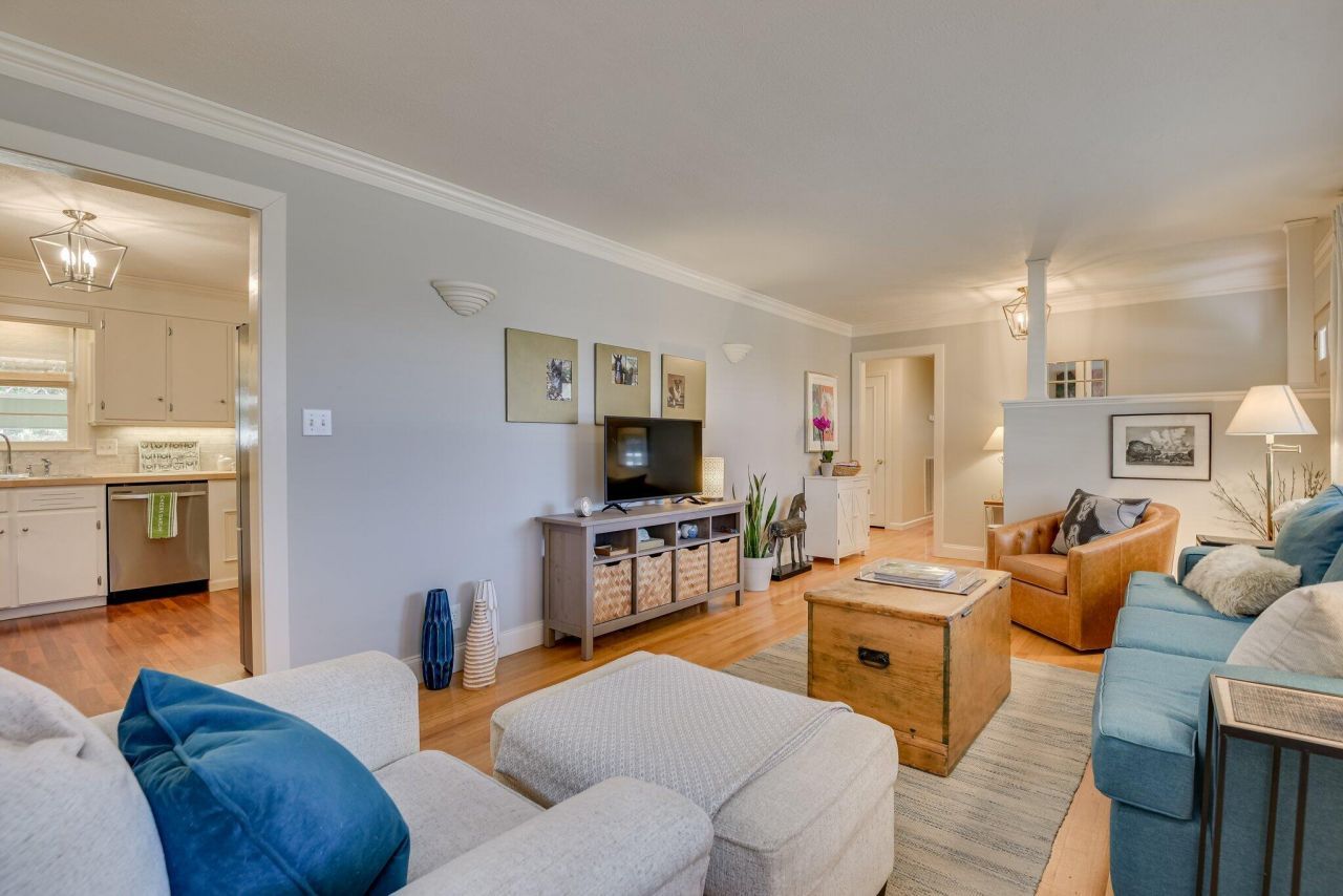 Welcome to Canter Cottage! Located directly across from the Aiken Training Track and around the corner from Bruce's Field, this charming brick one-level home is a rare find nestled between downtown Aiken and the Historic Horse District. Watch the horses train from your front window, walk to Powderhouse polo field or Aiken Horse Park - live at the center of it all! The 3BR/2BA home has original hardwood floors and designer lighting, new curtains and blinds, spacious living room, updated kitchen with butcher block counters, tile backsplash, newer appliances, and dining area with built-ins. Down the hall is the primary bedroom with two closets, en-suite bath with charming equestrian-themed wallpaper, two guest bedrooms and freshly painted hall bath. Bonus four season/sunroom is heated and cooled with a wall of windows overlooking the large, fenced backyard, which has a lovely patio and room for pets or a pool. Recent updates include new HVAC (2023), new hot water heater (2024), vapor barrier and insulation, decorative white equestrian fence in front, cedar stained privacy fence in backyard, new sod, plus pebble circular drive with room to fit a horse trailer or additional guest parking. Extensive new landscaping and plantings have been done- azaleas, camellias, gardenias, hydrangeas, tea olives, hollies, dogwoods and more. Please see attachments for complete list of improvements and plantings. This house would make a great forever home, seasonal residence or wonderful Airbnb with income producing potential (furniture is also available to purchase if desired!). Fabulous location in the heart of Aiken's equestrian district. It won't last long!
