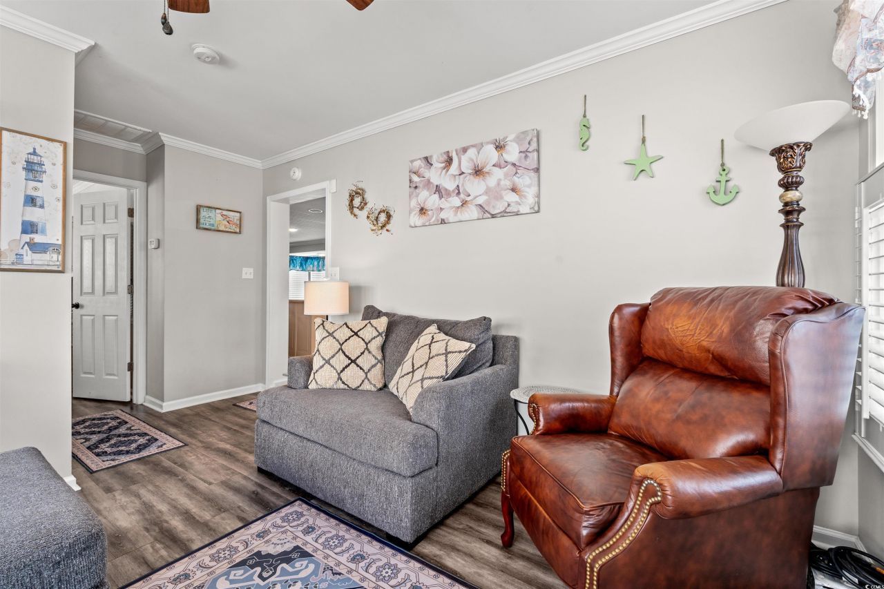 Wake up to ocean views and salty breezes! This coastal gem in Apache Campground offers the perfect mix of beachy charm, prime location, and everyday comfort. With 2 bedrooms and 1 bath, this home is filled with natural light and coastal vibes throughout. Youll love the LVP flooring, quartz countertops, spacious kitchen with a center island and flat-top range, stainless steel appliances, and beautiful backsplash. All centered around an open kitchen and dining area complete with an electric fireplace and built-in stereo system. The primary bedroom is spacious and inviting, with a beautiful bathroom featuring a walk-in shower. The secondary bedroom includes built in storage and closet space. Plantation shutters add an extra touch of charm, and the large front porch is ideal for relaxing after a day in the sun. Location is everything and this home has it all. Enjoy ocean views right from your window along with the convenience of walking to beach access, the pier, fishing, local restaurant, a convenience store and much more. Youll also have access to amazing amenities an outdoor pool, game room, pickleball and basketball courts, playground, and fun events for the whole family. Whether youre searching for a primary residence, a secondary beach escape, or an investment property, this one checks all the boxes. Dont miss your chance to own a piece of the beach life!